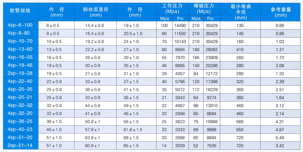 結 構:膠管由內膠層、四層鋼絲纏繞層和外膠層組成。