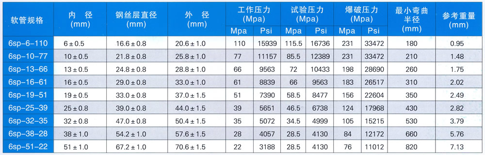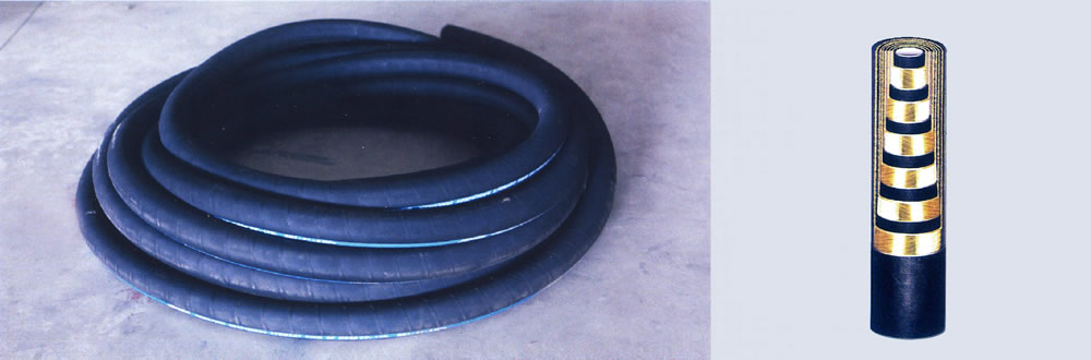 結(jié) 構(gòu):膠管由內(nèi)膠層、六層鋼絲纏繞層和外膠層組成。