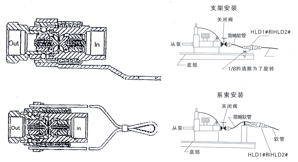 HLD1#和HLD2#拉斷閥給有毒介質的輸送提供了脫離保護,一旦被系緊在安裝管底部的入□處,該閥門就會有效的防止氣體外泄,但過度的拉緊會導致閥門自動與內壓截止閥的脫離,在外力作用下分開后的兩端均能自行封閉。加氣軟管設拉斷閥是為了防止加氣汽車在加氣時因意外起動而拉斷軟管或拉倒加氣機,造成有毒介質外泄事故發生。